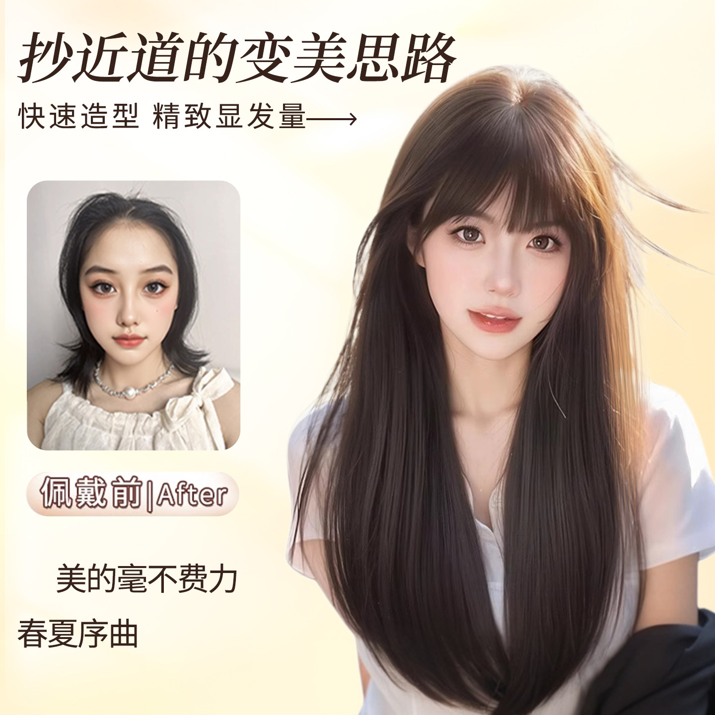 免戴发网假发女片头顶黑长直无痕隐形增发量蓬松含真发刘海假发套