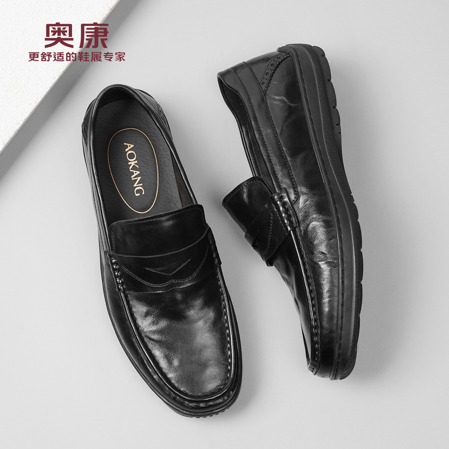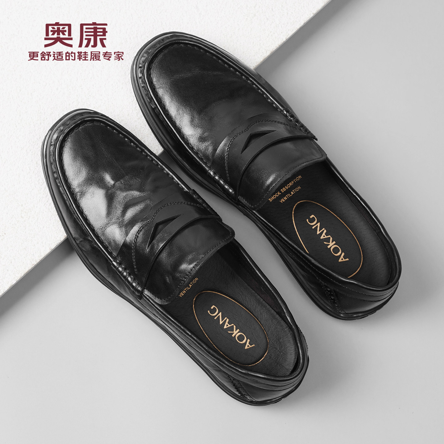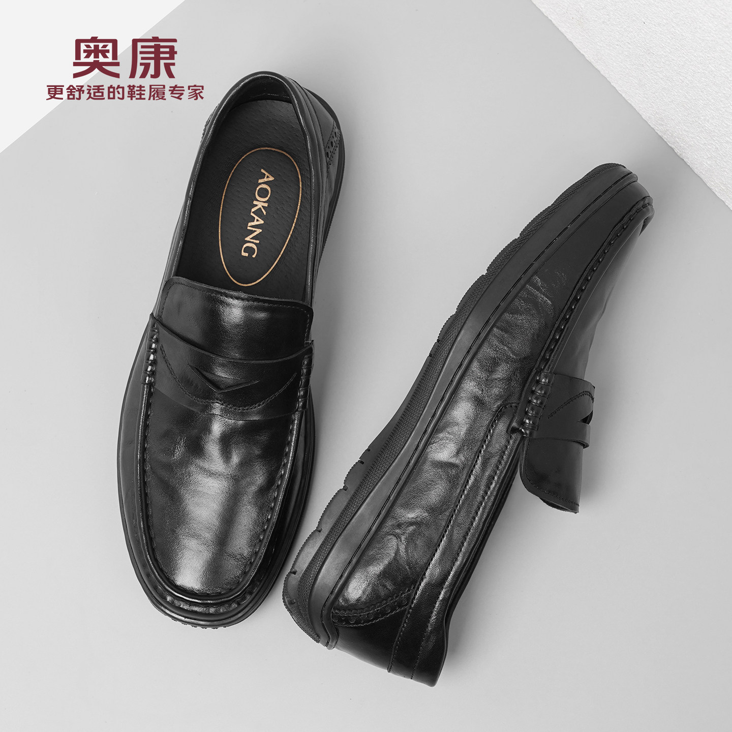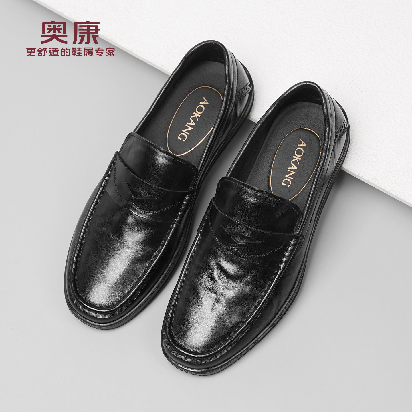 奥康春秋季商务休闲皮鞋男真皮软底乐福鞋舒适一脚蹬套脚爸爸鞋