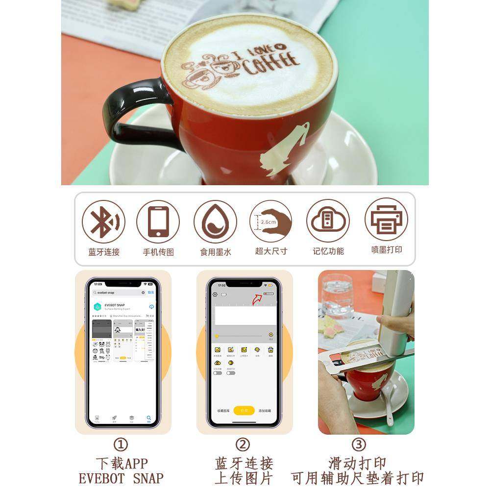 EVEBOT亿瓦手持食品美食打印机 咖啡酸奶拉花餐饮美食打印机餐盘