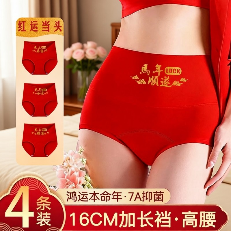 高腰纯棉内裤女大码裆本命年大红收腹提臀女士短裤头抗菌中腰新年