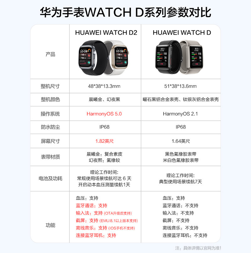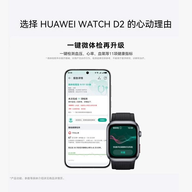 华为手表WATCH D2支持动态血压监测一键微体检男女款智能手表蓝牙通话