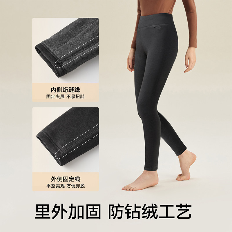德绒秋裤女士内穿高腰保暖裤大码修身打底衬裤薄款发热棉毛裤冬季