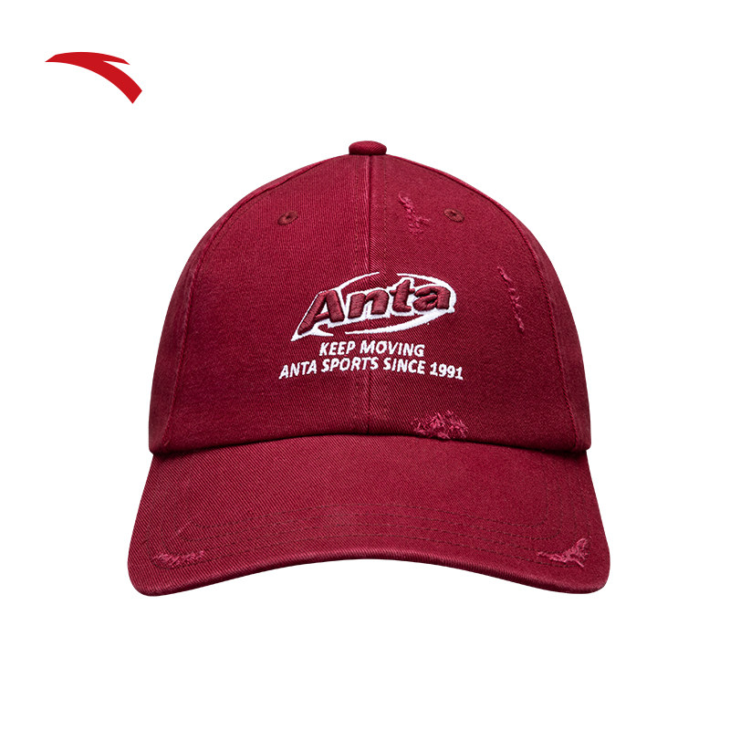 安踏新年款红色棒球帽时尚百搭情侣潮流帽子字母刺绣韩版休闲帽