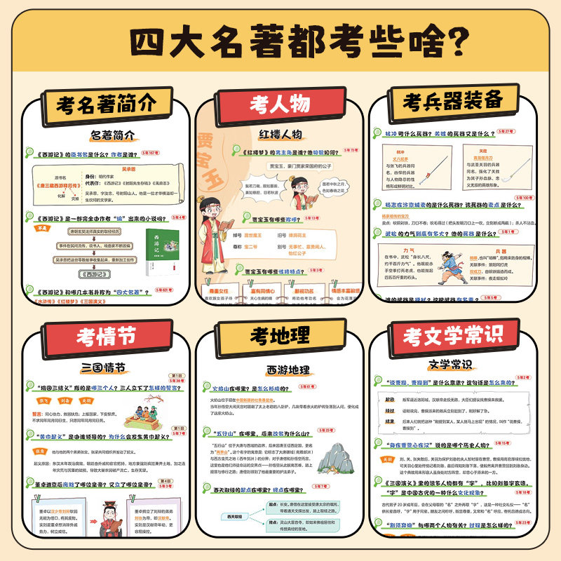 漫画版四大名著1001问正版书籍西游记水浒传三国演义红楼梦四大名著人物关系考点速记高频考全覆盖初中小学生课外阅读书籍必读