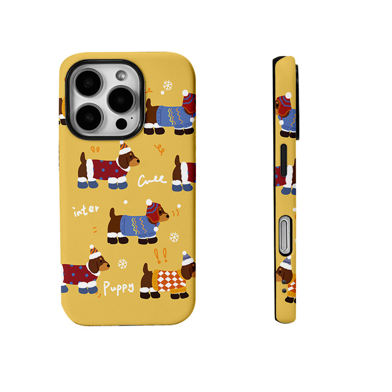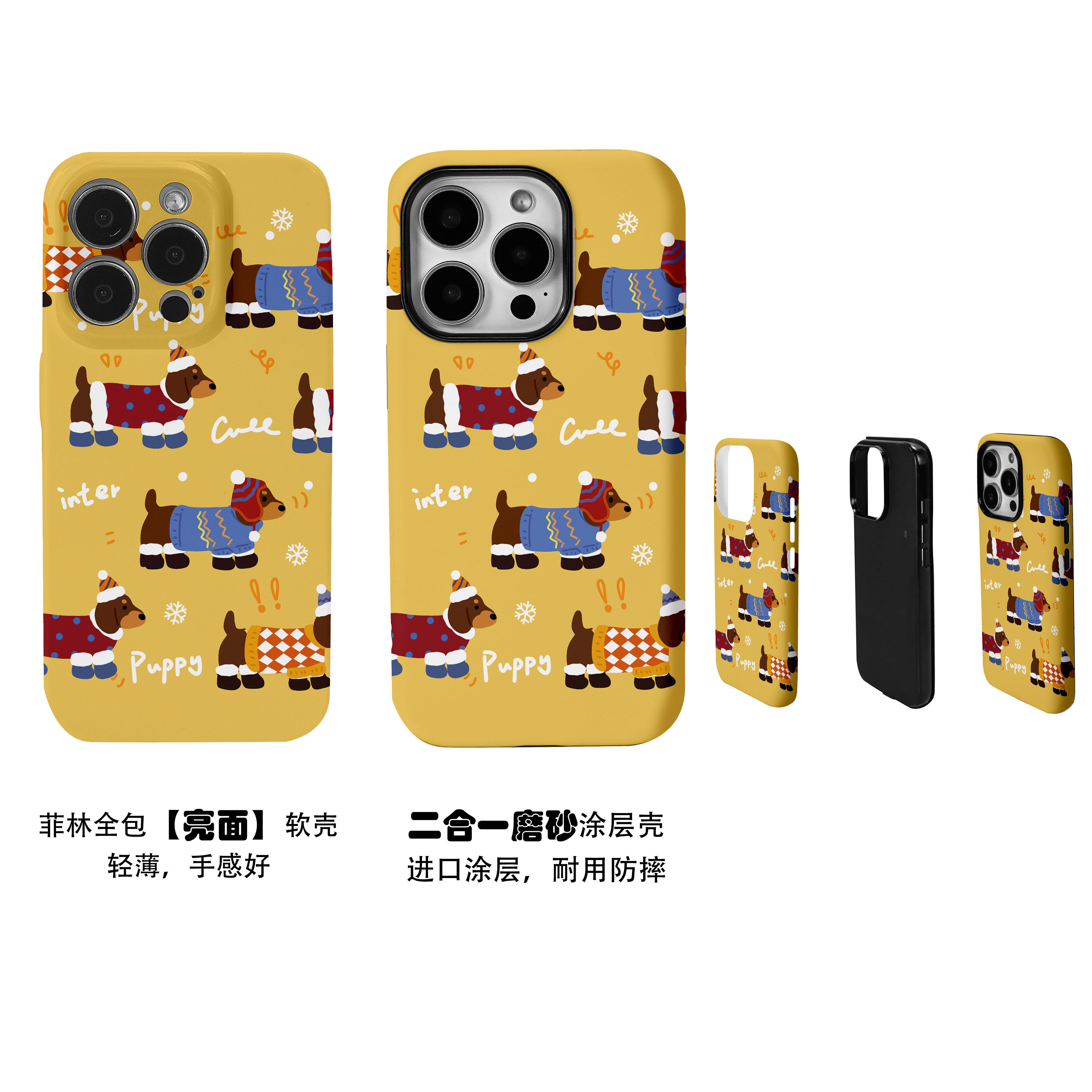 可爱圣诞黄色狗狗插画菲林二合一手机壳适用苹果17nova14华为p70mate60小米15opporen14ovivo荣耀300iPhone16
