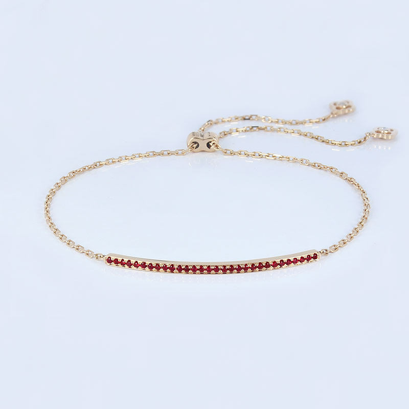18K玫瑰金天然鸽血红宝石一字手链可调节 彩金镶钻石手饰红绳女款