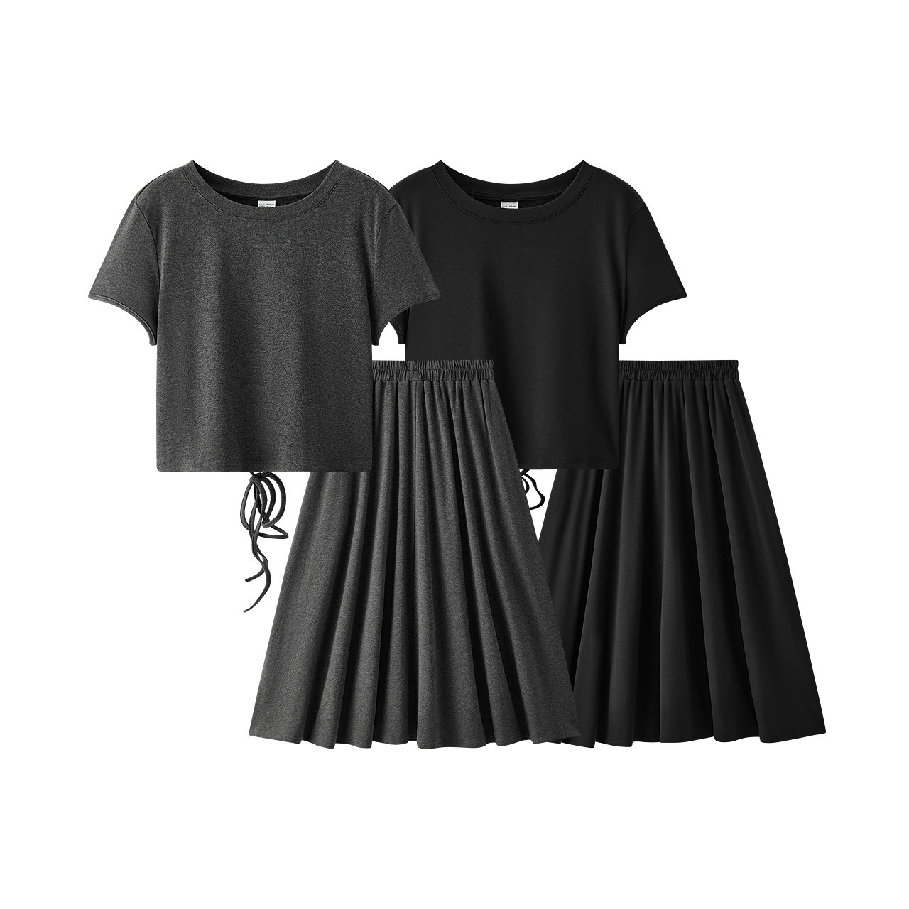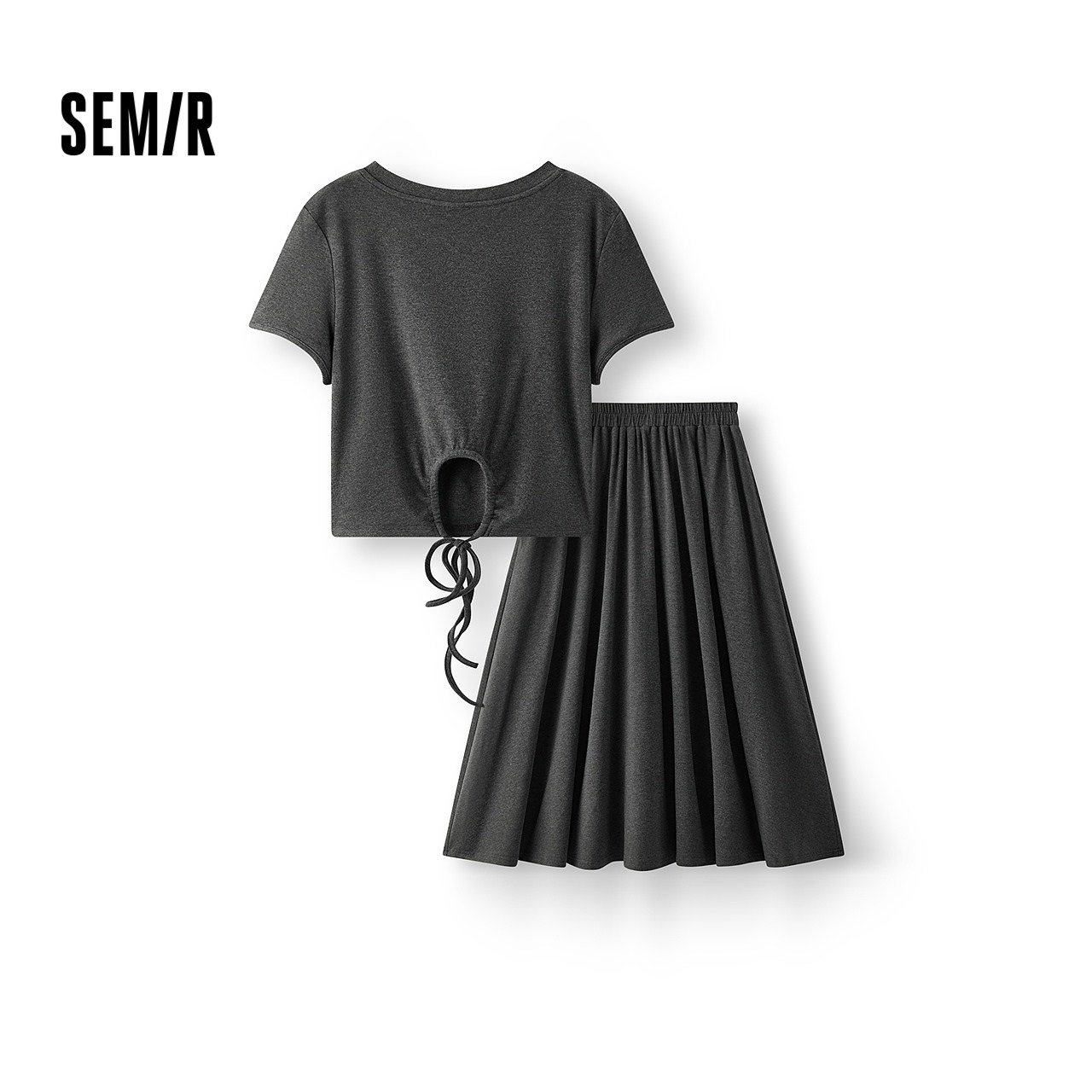 森马套装女夏季镂空抽绳短上衣松紧腰A字长裙百搭优雅气质两件套