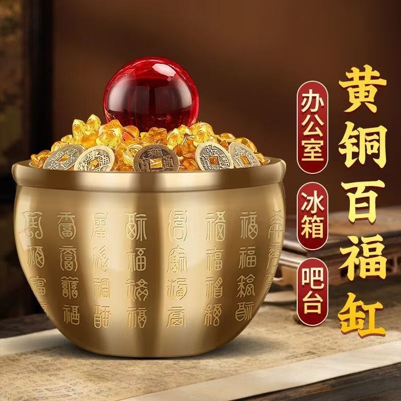 黄铜米缸招财百福缸聚宝盆卧室客厅书房桌面摆件纯铜百福聚财缸