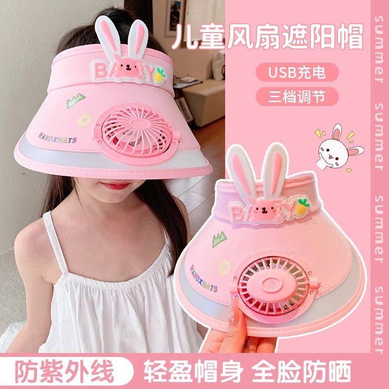 儿童带风扇空顶防晒帽子宝宝夏季新款小朋友男孩女童遮阳帽太阳帽
