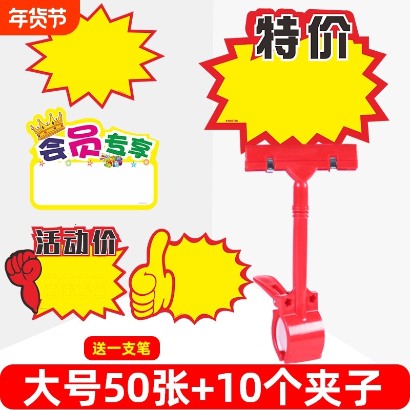 超市服装店价格牌大号爆炸贴新款网红pop广告纸价格展示牌拇指夹子空白手写标价签夹特价促销标签摆地摊店长