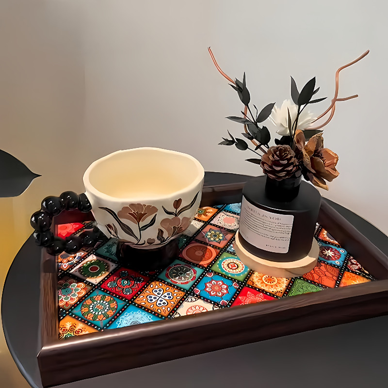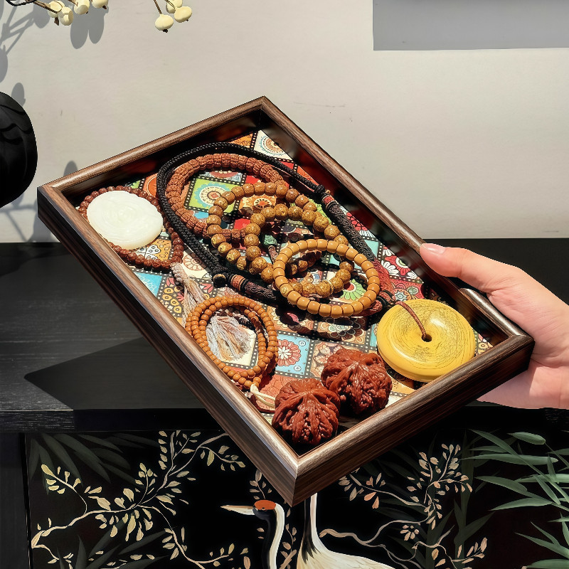 高档复古茶盘古桌面梳妆台精致装饰轻奢木质收纳酒杯茶水茶盘托盘