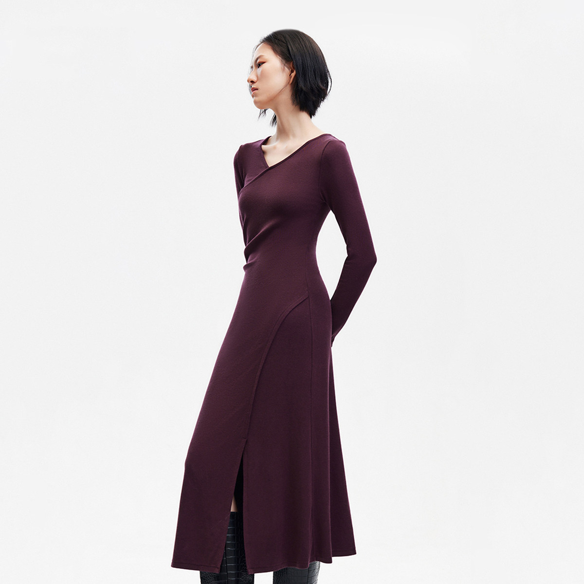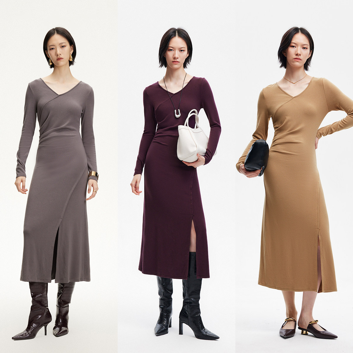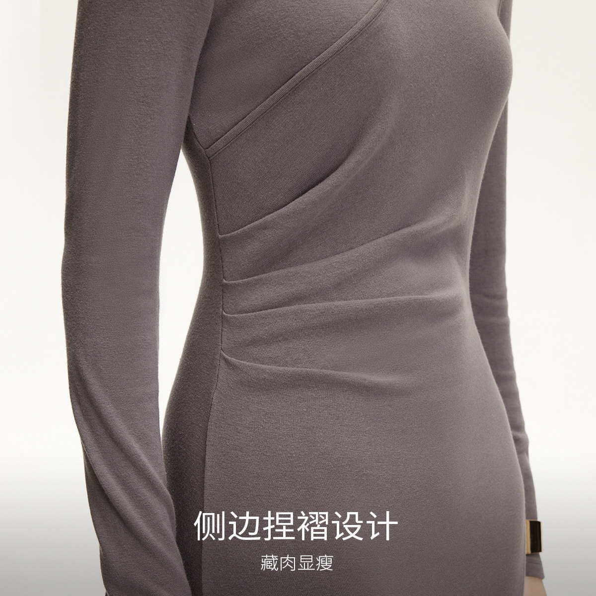 Vero Moda奥莱连衣裙秋冬新款款修身V领收腰褶皱时尚气质裙子流行