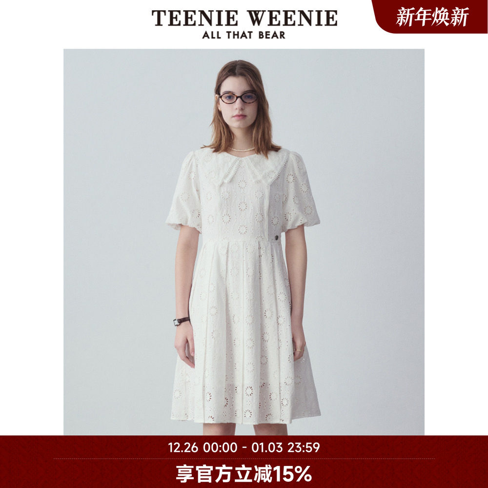 TeenieWeenie小熊奥莱简约休闲镂空花朵白色连衣裙甜美娃娃领裙子