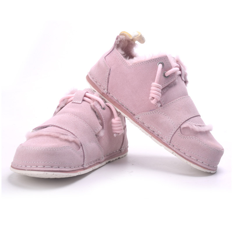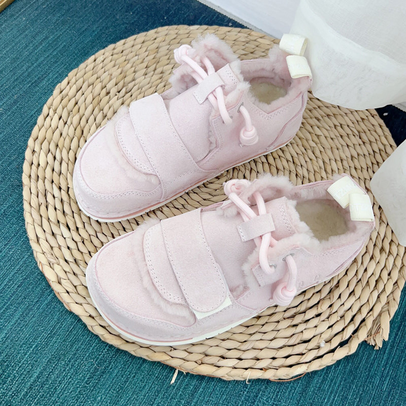 丑萌鞋女真皮低帮雪地靴皮毛一体加棉毛毛鞋冬季大头鞋肥脚鞋短靴