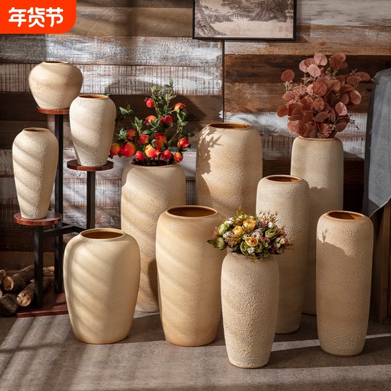 景德镇落地陶瓷大花瓶复古手工粗陶罐客厅摆件装饰品玄关电视柜