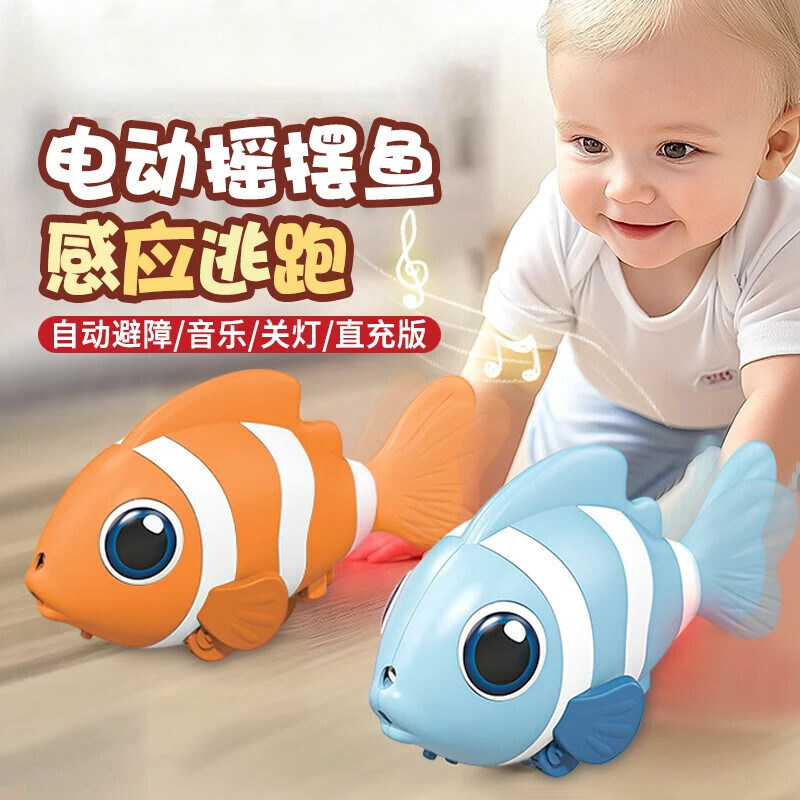 电动鱼小鱼玩具儿童电子仿真会动摇摆婴儿爬行引导6个月宝宝8学爬