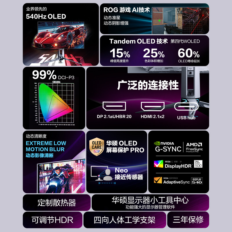 华硕ROG满血超杀27Pro二代吹雪PG27AQWP-W显示器2K540Hz双模720Hz