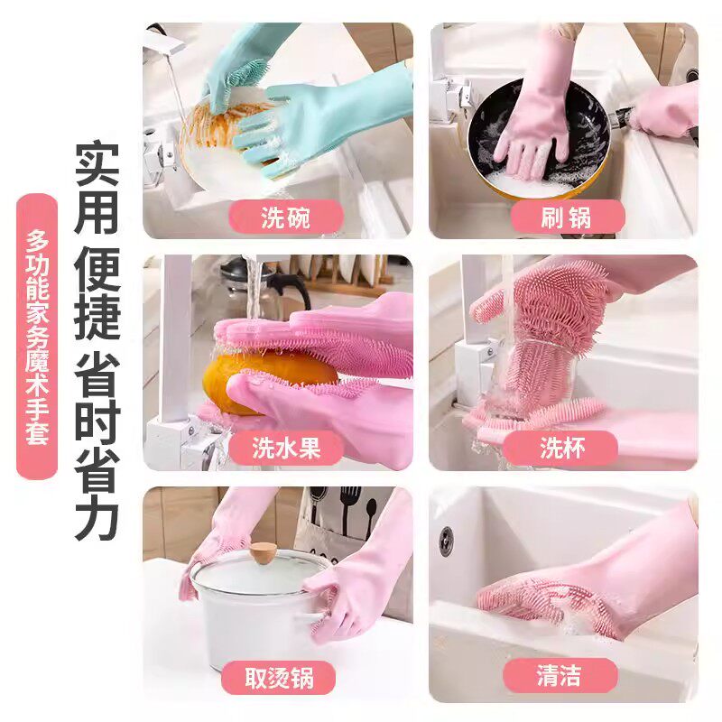 洗碗魔术手套防水耐用型厨房家务洗碗洗菜洗衣服清洁神器橡胶家用