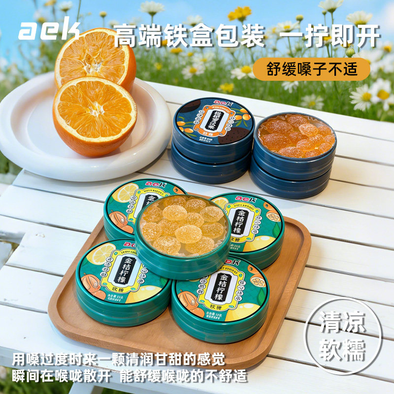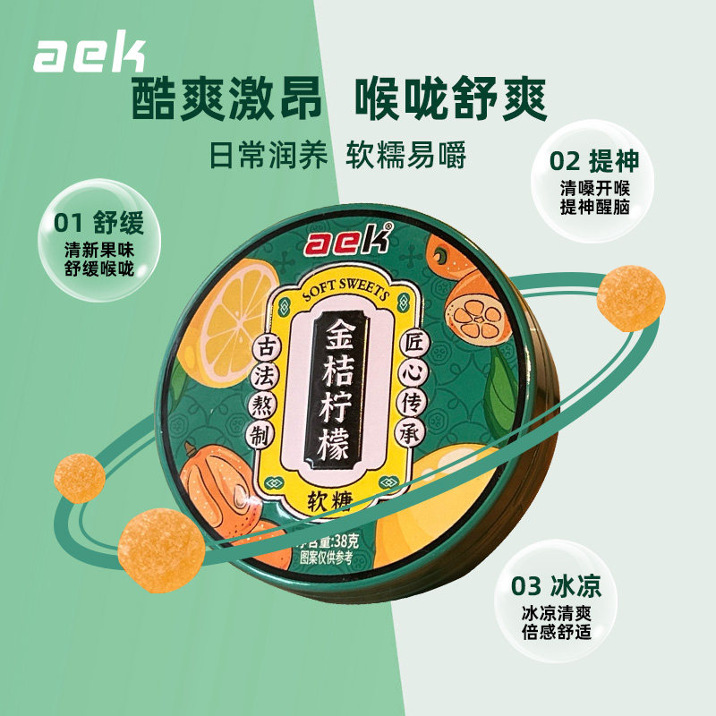 aek金桔柠檬软糖清凉薄荷糖独立包装润喉水果糖零食果汁软