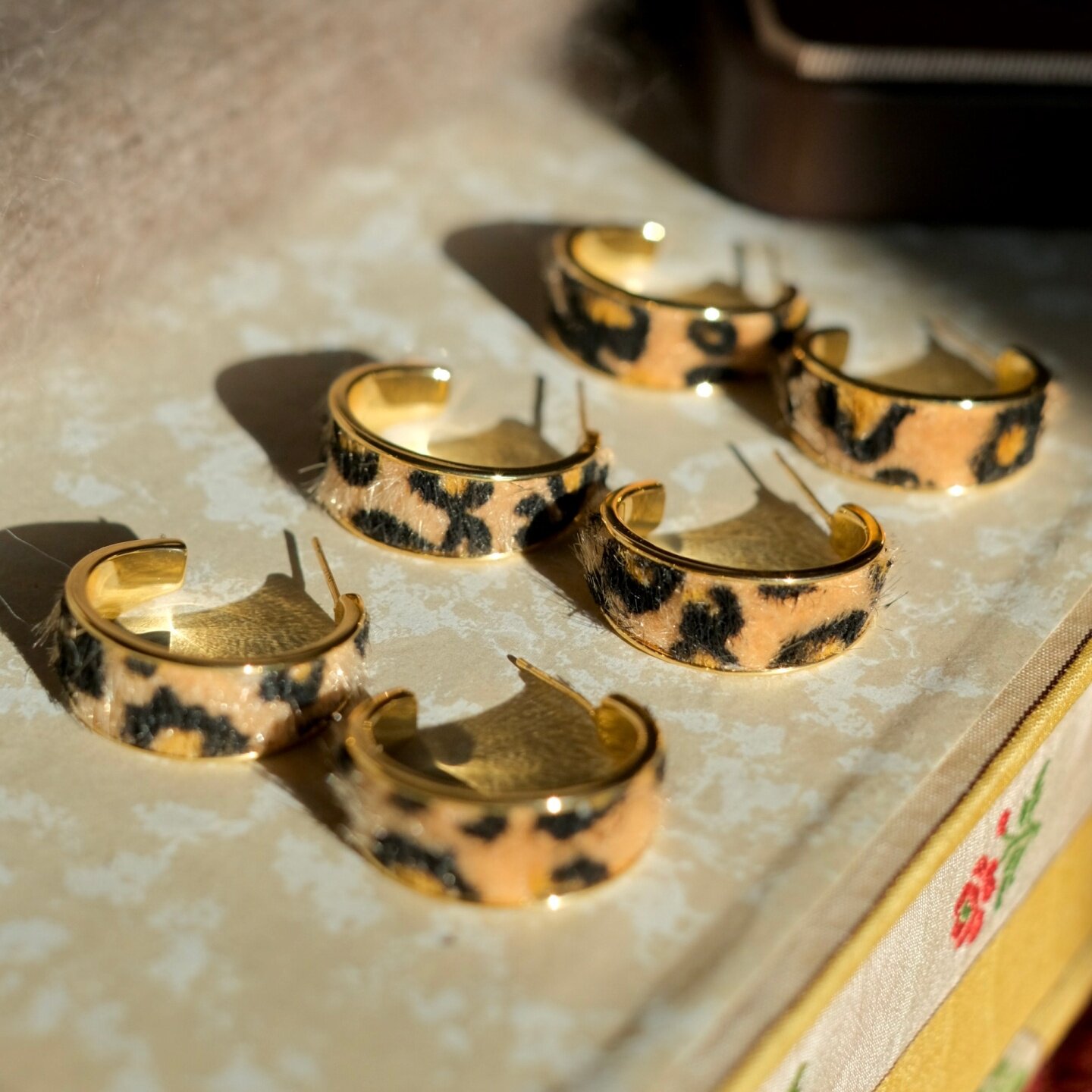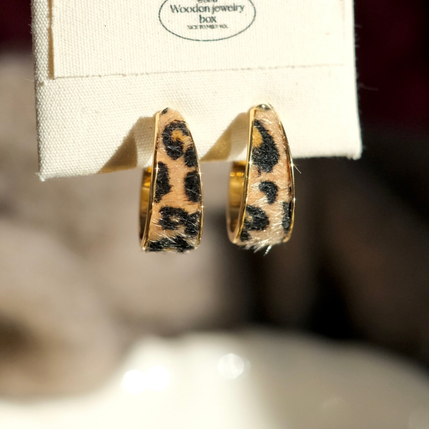 《豹纹圆环》复古小众气质秋冬个性夸张耳圈耳环耳夹耳饰无耳洞女