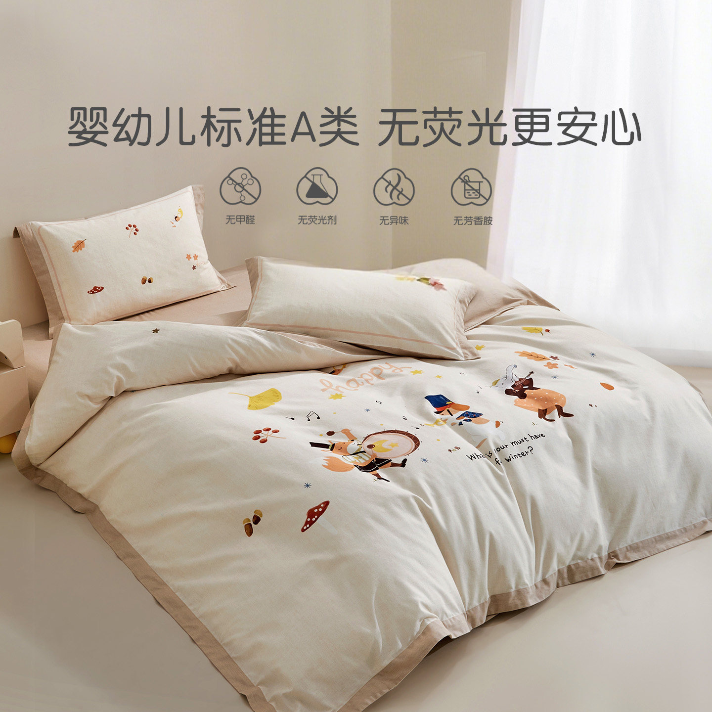 罗莱家纺儿童2025新款全棉纯棉磨毛加厚四件套被套学生宿舍三件套