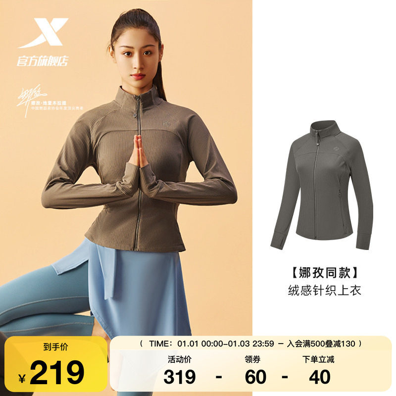 特步运动外套女2025年秋冬健身紧身女装上衣训练风衣975328060025