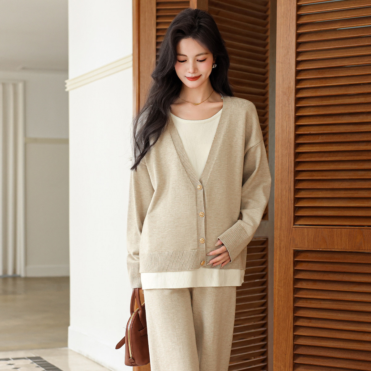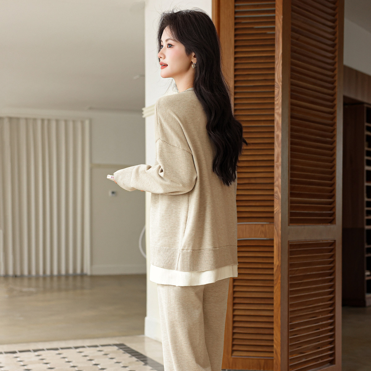婧麒孕妇套装2025新款秋冬季宽松假两件针织上衣显瘦开叉长裤秋装
