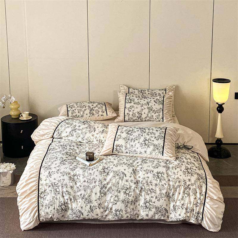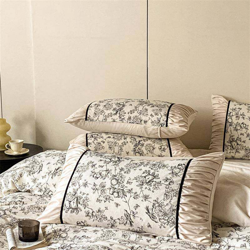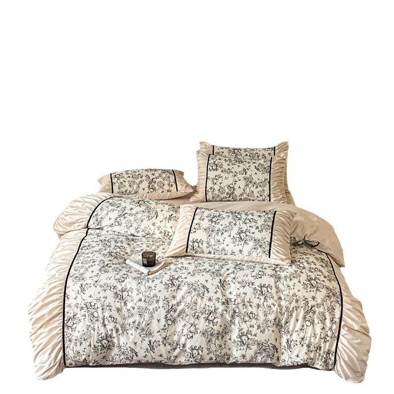 新款法式复古印花褶皱花边水洗磨毛四件套小碎花学生宿舍三件套床