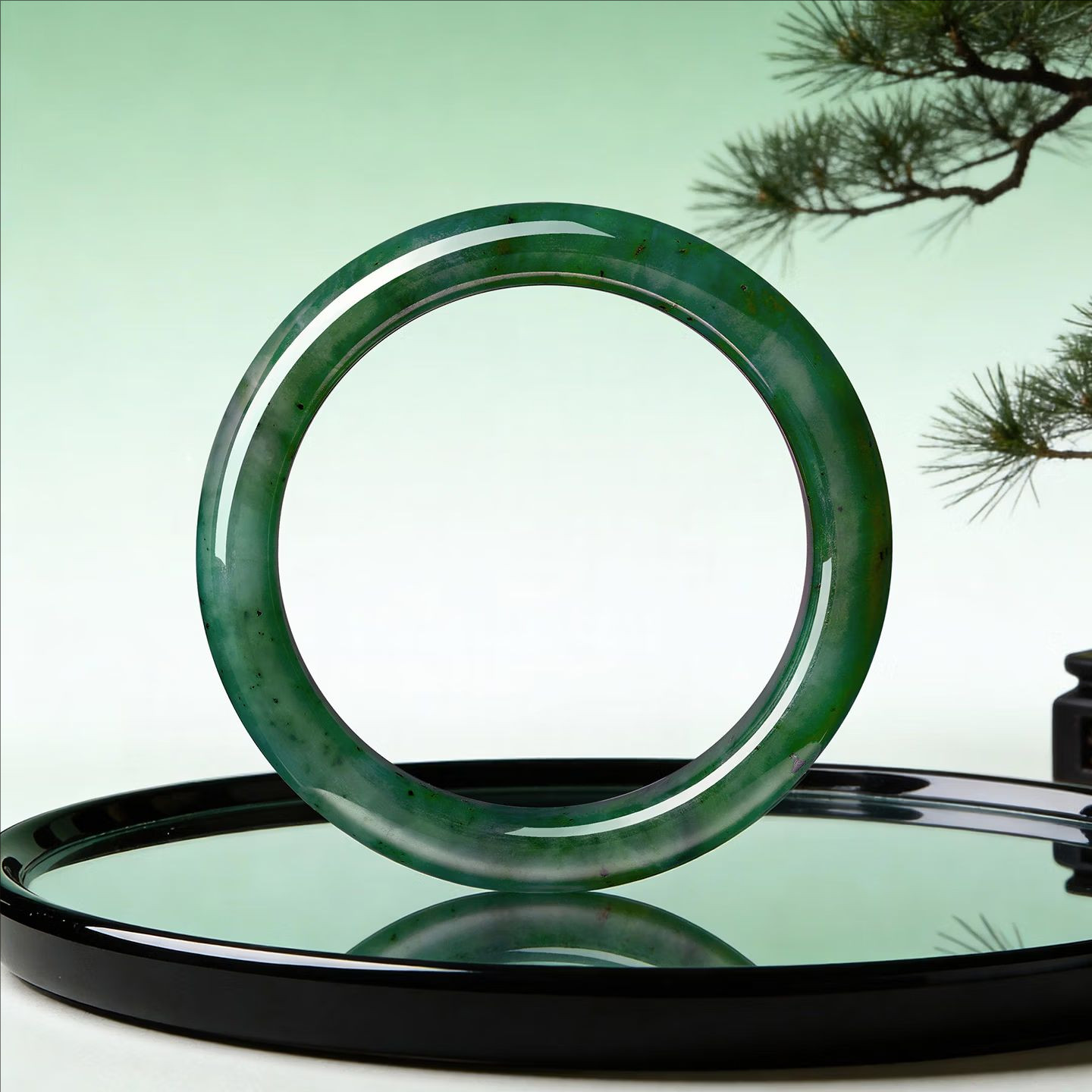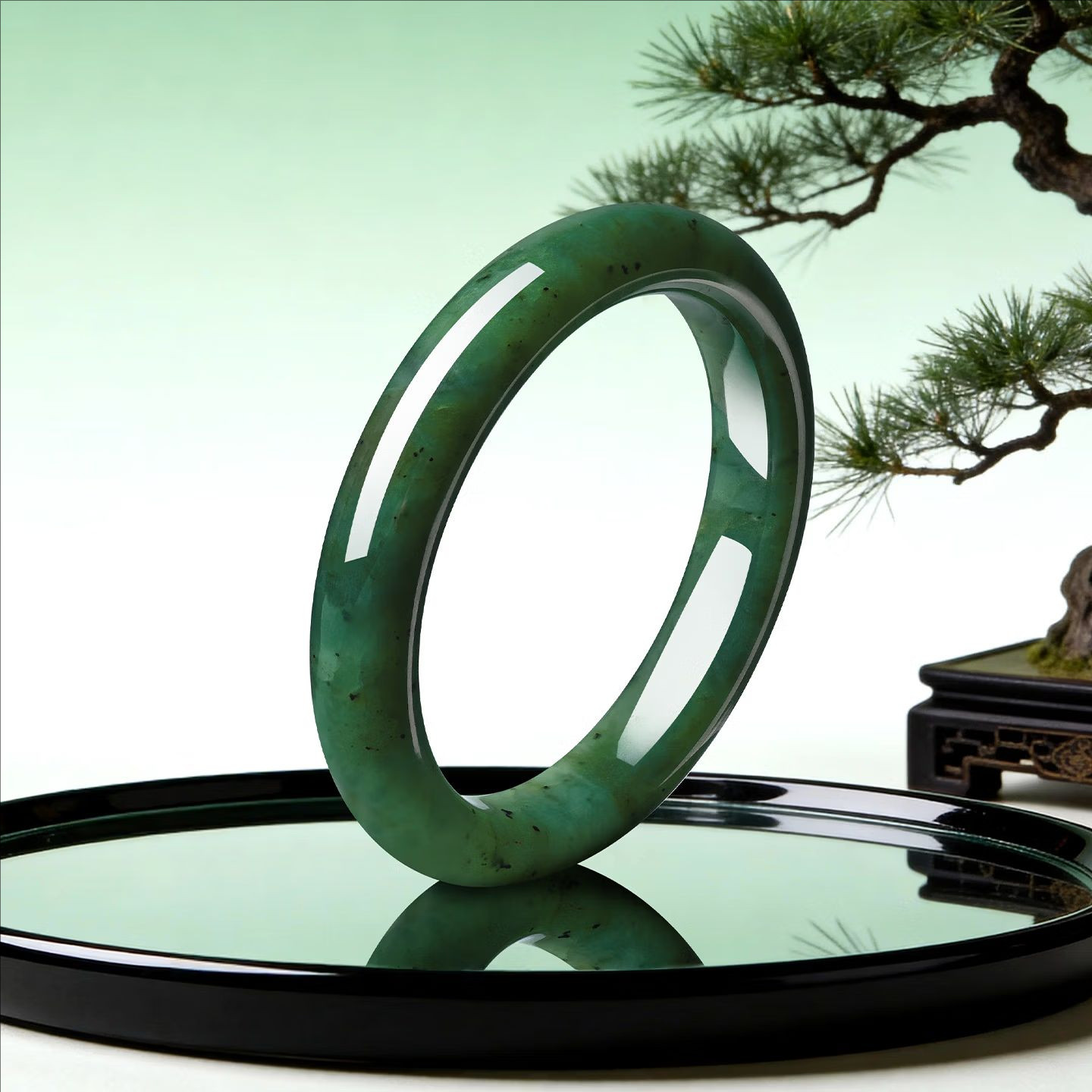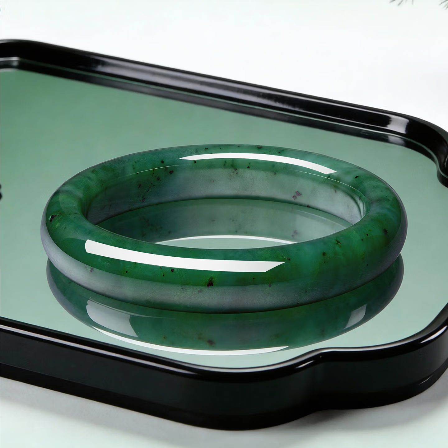 正品新疆和田碧玉手镯女款美人痣碧玉宽条玉镯子礼物送妈妈玉石
