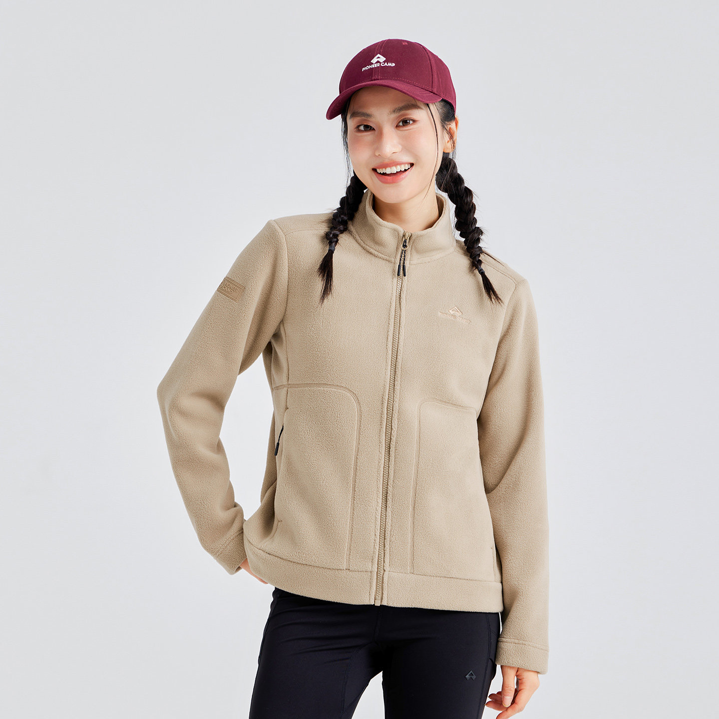 好物体验骆驼抓绒衣女式上衣秋长袖加绒保暖立领户外摇粒绒外套男