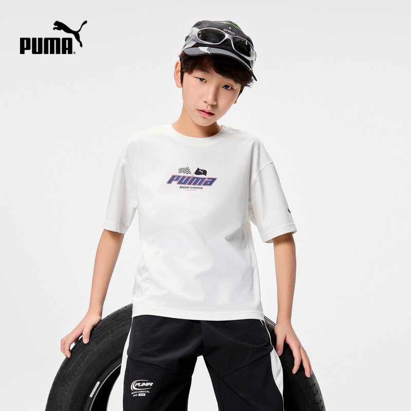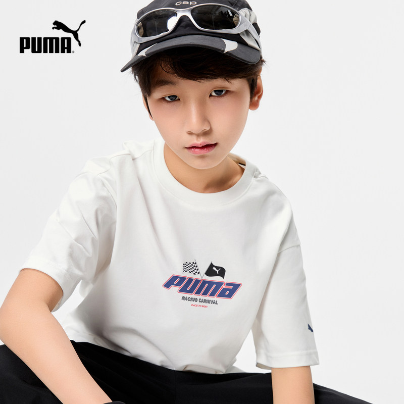 PUMA彪马童装儿童男童吸湿T恤大童衣服速干短袖运动宽松圆领百补
