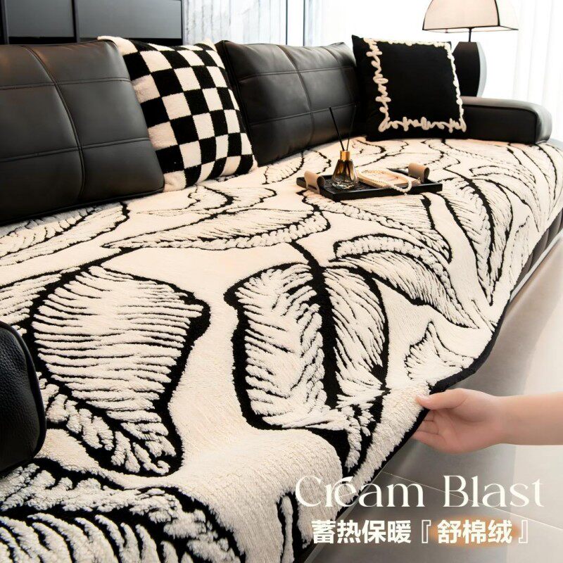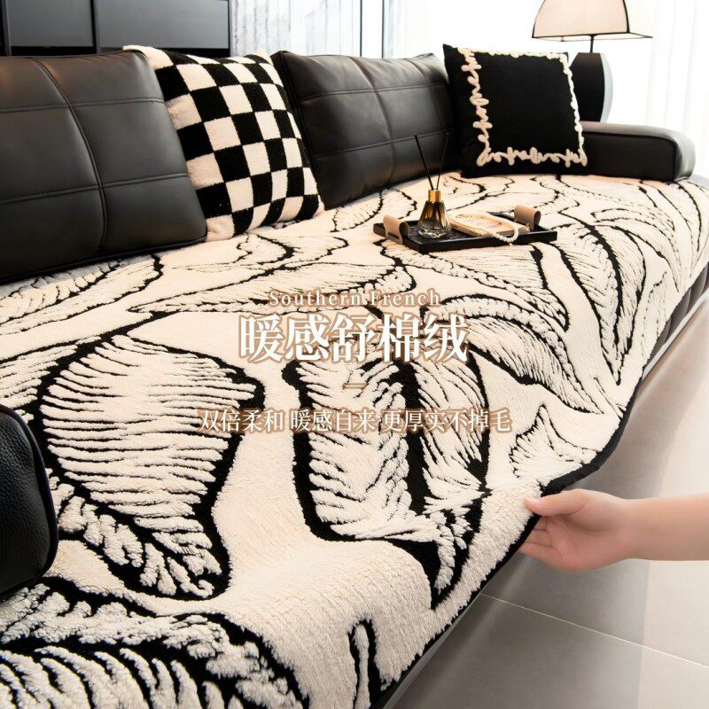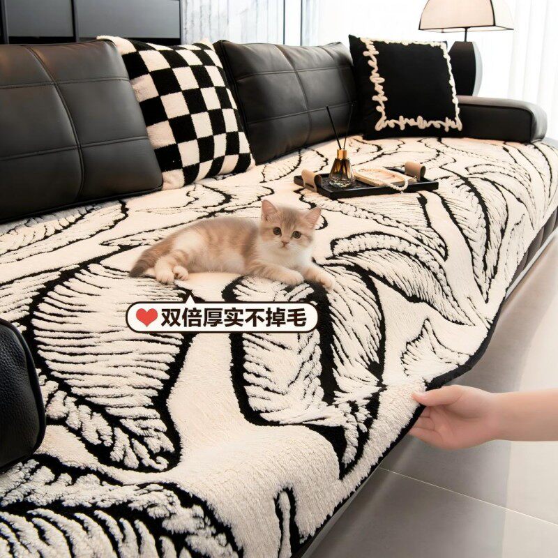 2025劳伦斯专用沙发垫冬加厚轻奢高级感毛绒防滑皮沙发坐垫子黑白
