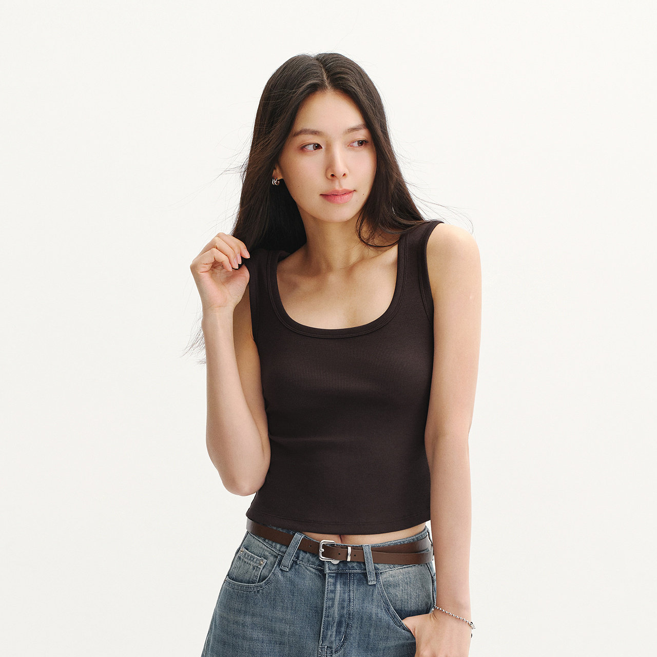 森马背心女夏季短款U领纯色凉感紧身内搭2026新款简约风百搭上衣