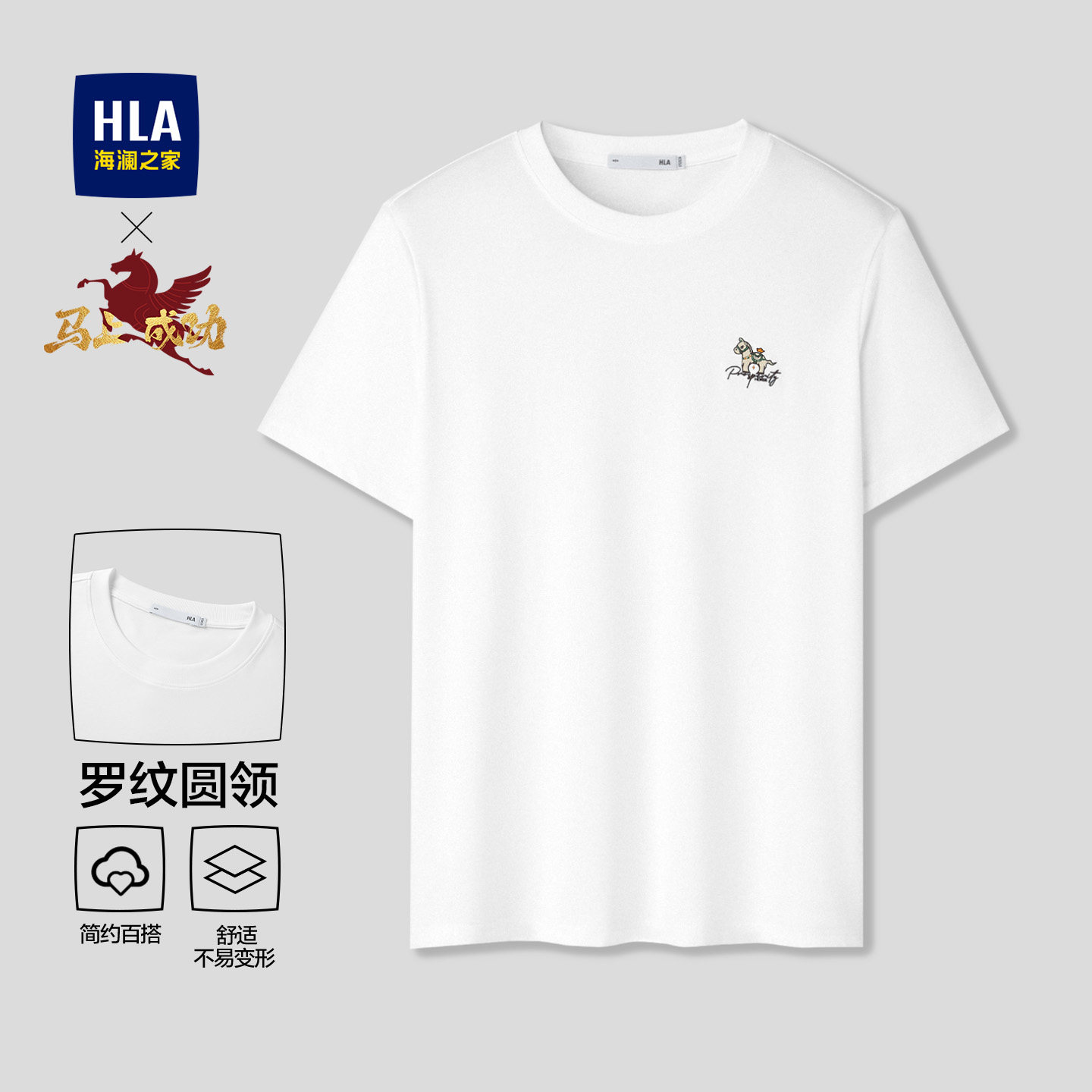 【凉感】HLA海澜之家马年贺岁系列26夏新发财大码短袖T恤上衣男装