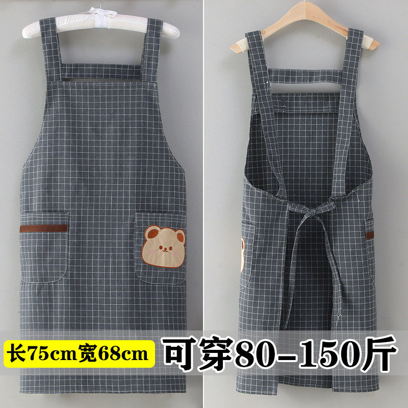 新款棉布耐磨围裙长袖厨房家用防污罩衣透气围腰做饭上班工作服女