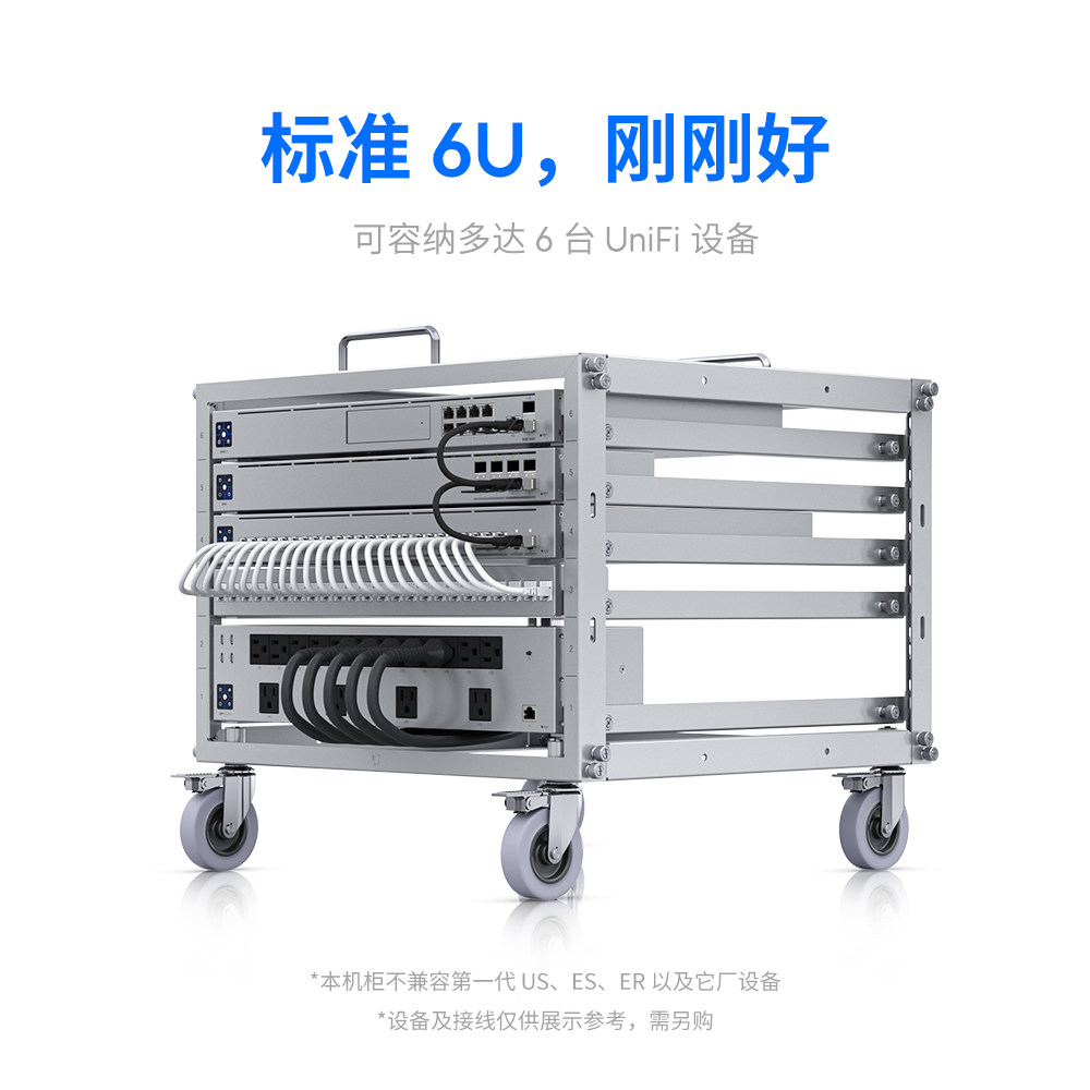 UniFi U-Rack-6U-TL梦想机柜免工具安装6U尺寸厚质钢材360度散热静音万向脚轮Ubiquiti优倍快UBNT