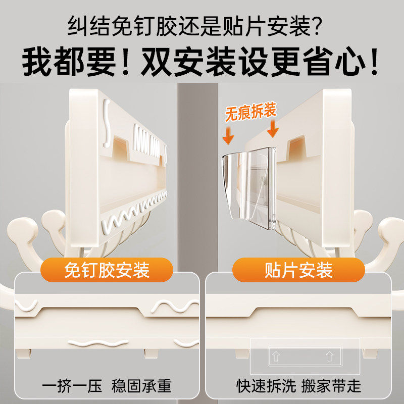 居家厨房铁艺橱柜收纳挂架多功能排钩衣柜整理架厨房无痕免钉挂钩