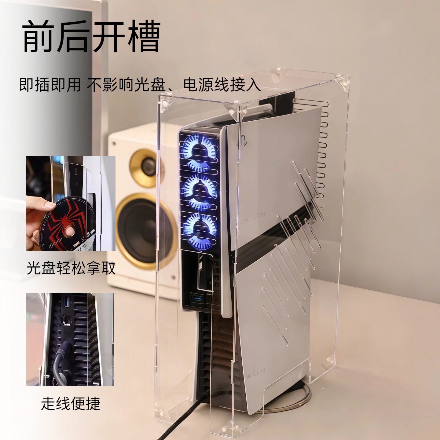 透明亚克力PS5防尘罩pro主机壳散热罩适用索尼游戏机竖放手柄罩
