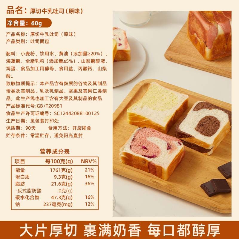 颜小贝黄油厚切吐司面包手撕0蔗糖营养健康早餐零食代餐食品整箱