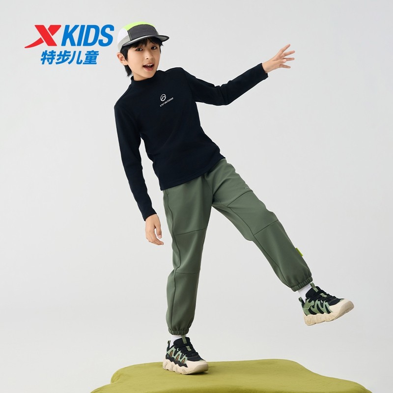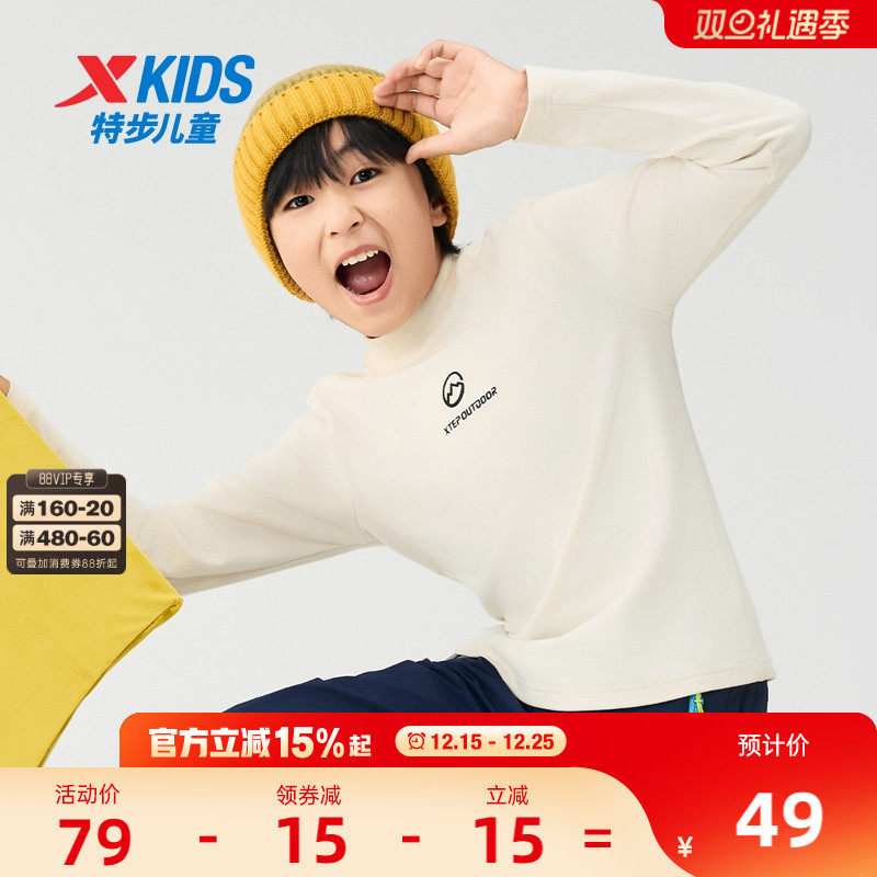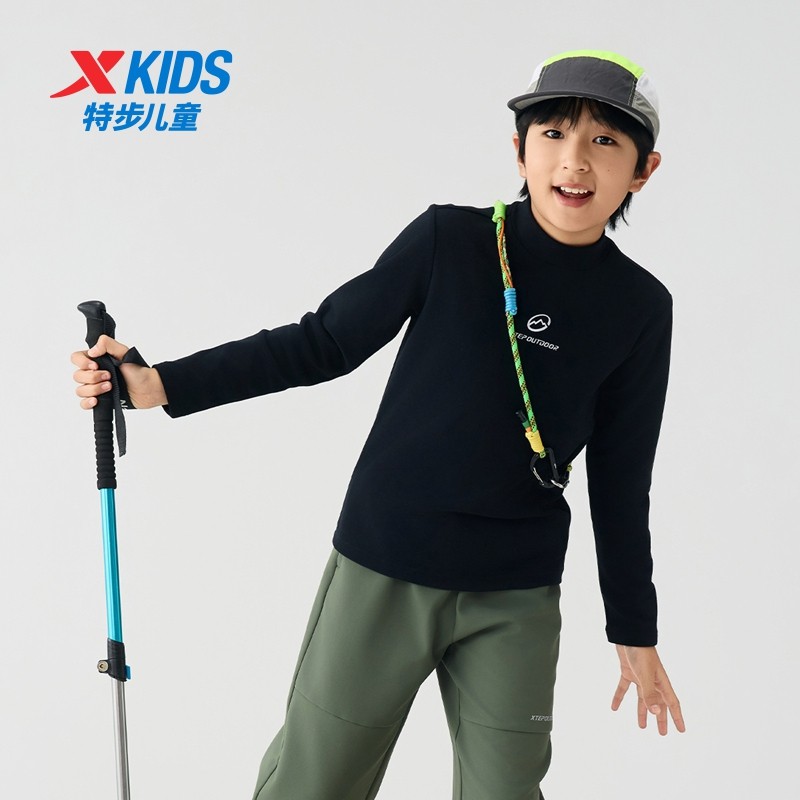 特步童装2025秋冬新款男童德绒打底衫半高领儿童长袖T恤保暖内搭