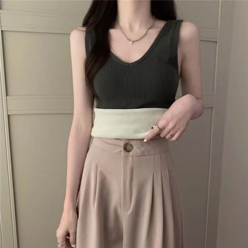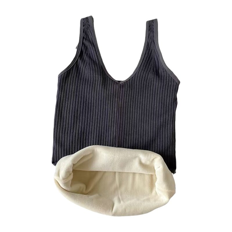 法式v领小吊带背心女秋冬加绒加厚ins内搭修身保暖针织打底衫上衣