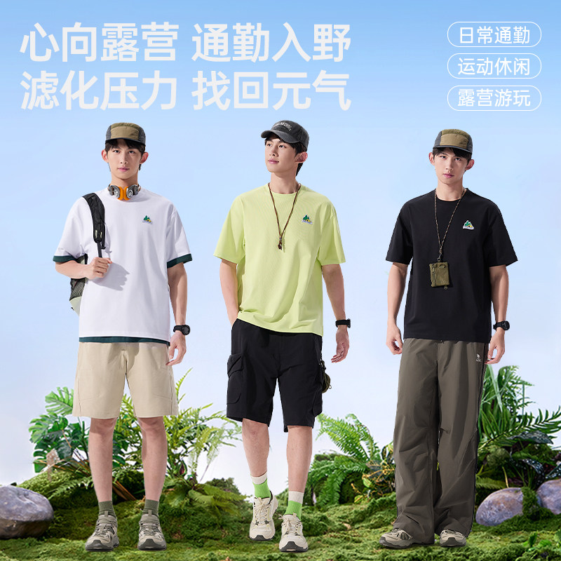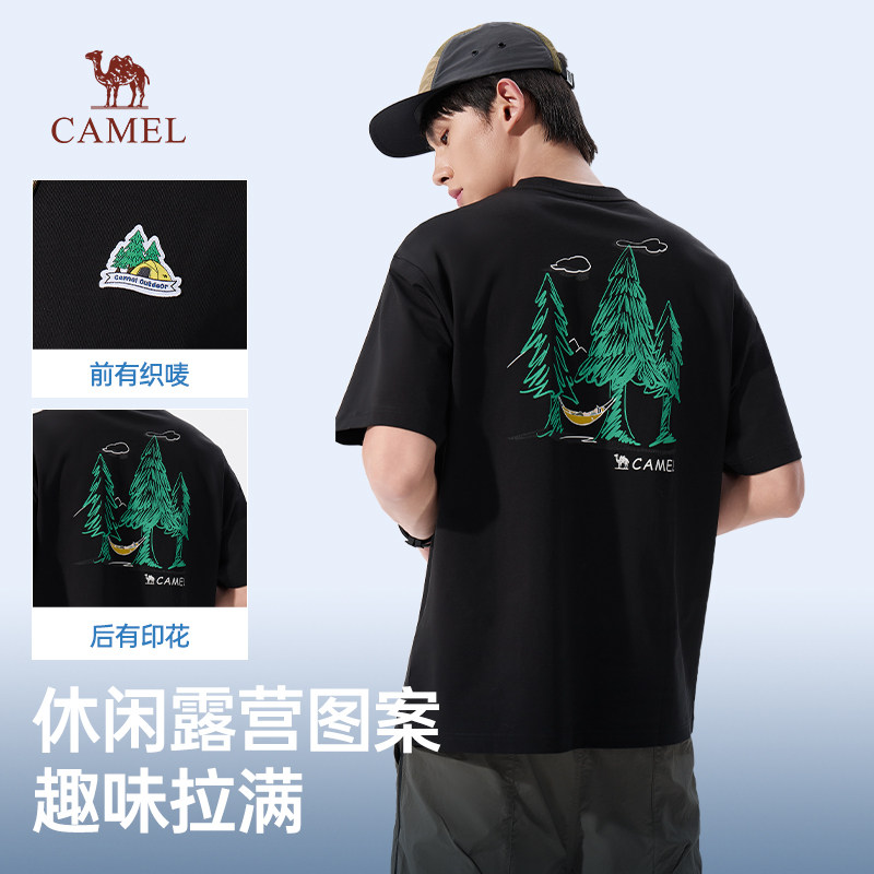 骆驼男装三防短袖t恤男2026新款夏季圆领户外印花休闲半袖体恤男