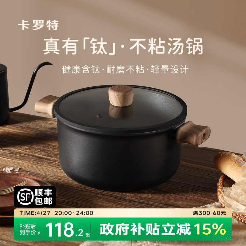 卡罗特汤锅有钛不粘锅炖锅家用煎炒蒸煮粥奶锅麦饭石电磁炉泡面锅
