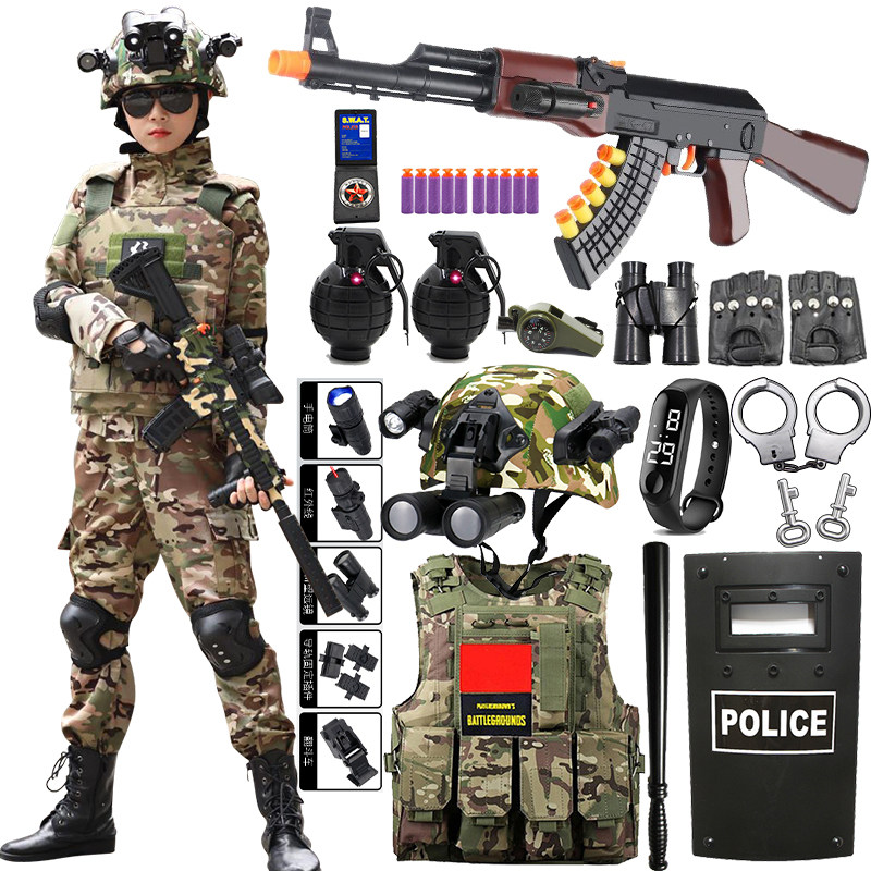 儿童玩具枪套装男孩军装真户外衣服迷彩特种兵三级甲小警察装备