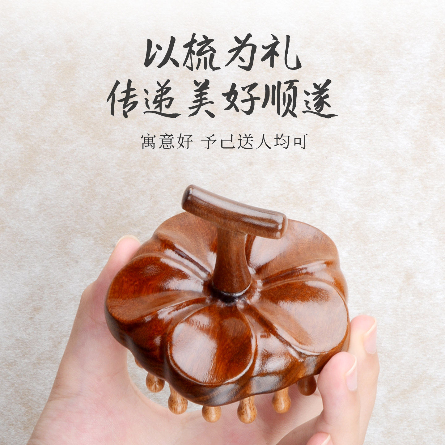 金丝檀木柿柿如意按摩梳子头部经络梳头皮按摩梳圆盘指环头疗结婚