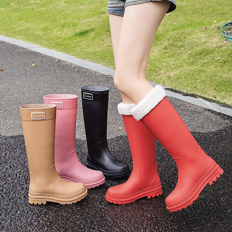 高筒雨鞋水鞋女雨靴加绒成人外穿防水徒步水靴防滑鞋子鞋底耐磨