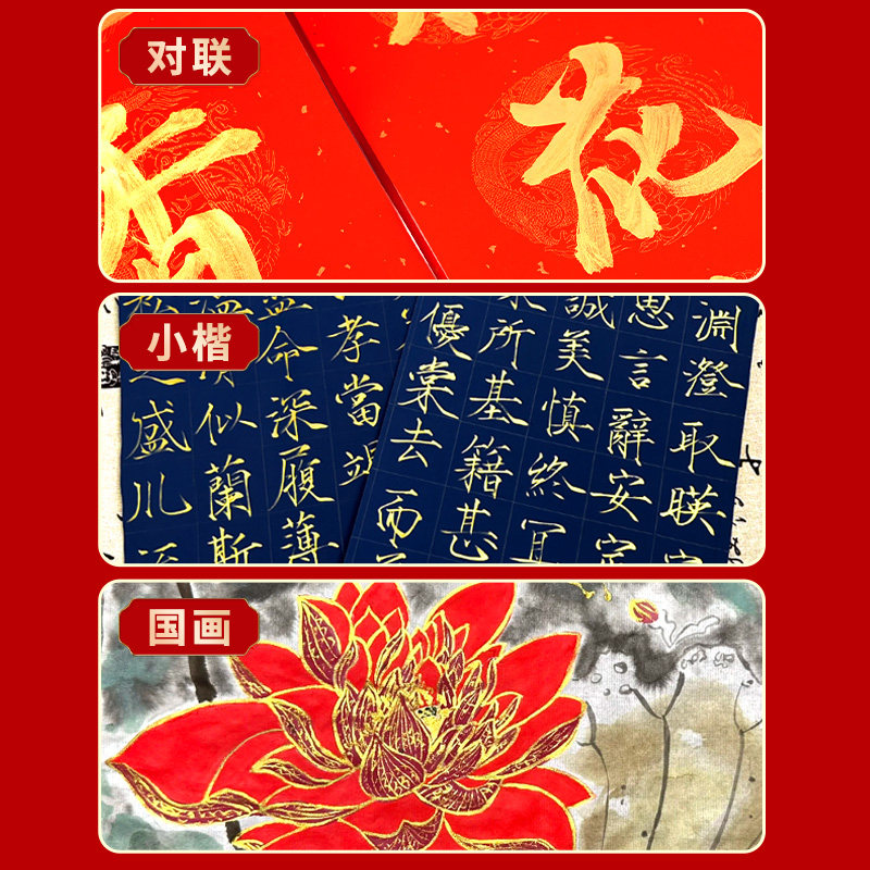 金色墨汁对联春联用毛笔墨水学生写对联纸书法专用快干朱砂墨液国画瓶装书画写练习金粉金墨朱墨白墨小瓶速干