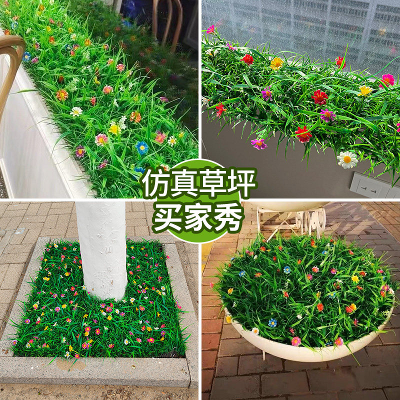仿真草坪带花隔断人造植物墙塑料假花窗台装饰造景假绿植地毯摆件