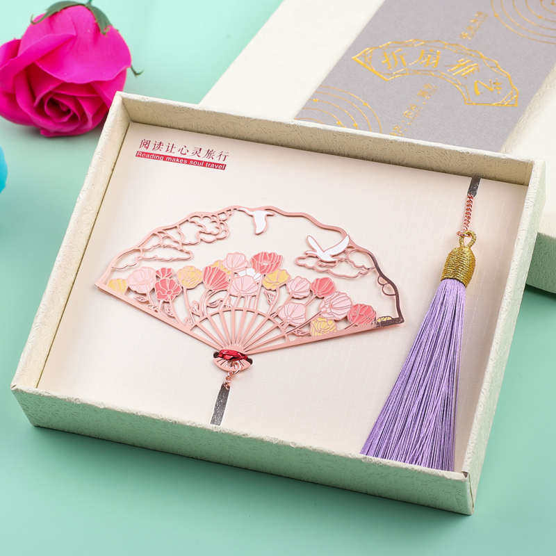 精致镂空金属书签套装折扇高档礼盒精美流苏文艺学生中国风复古故