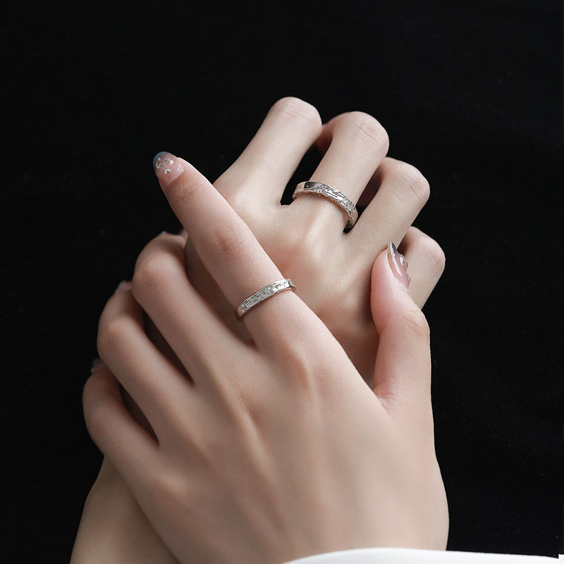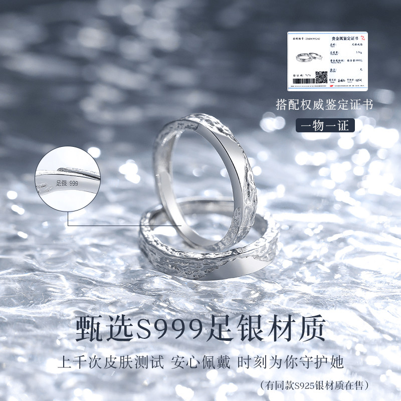 冰川S999足银情侣款戒指女男一对小众设计素对戒纪念日礼物送女友